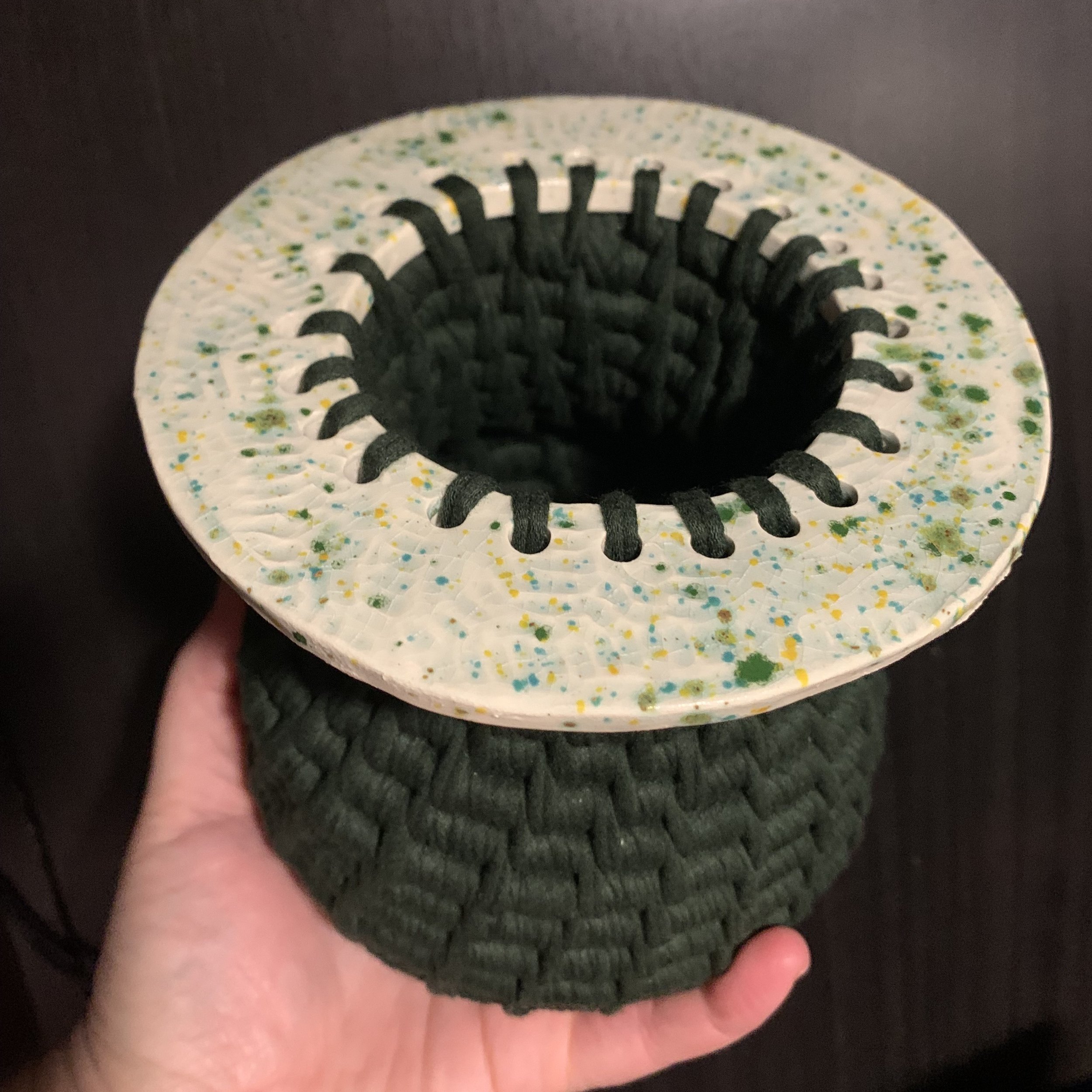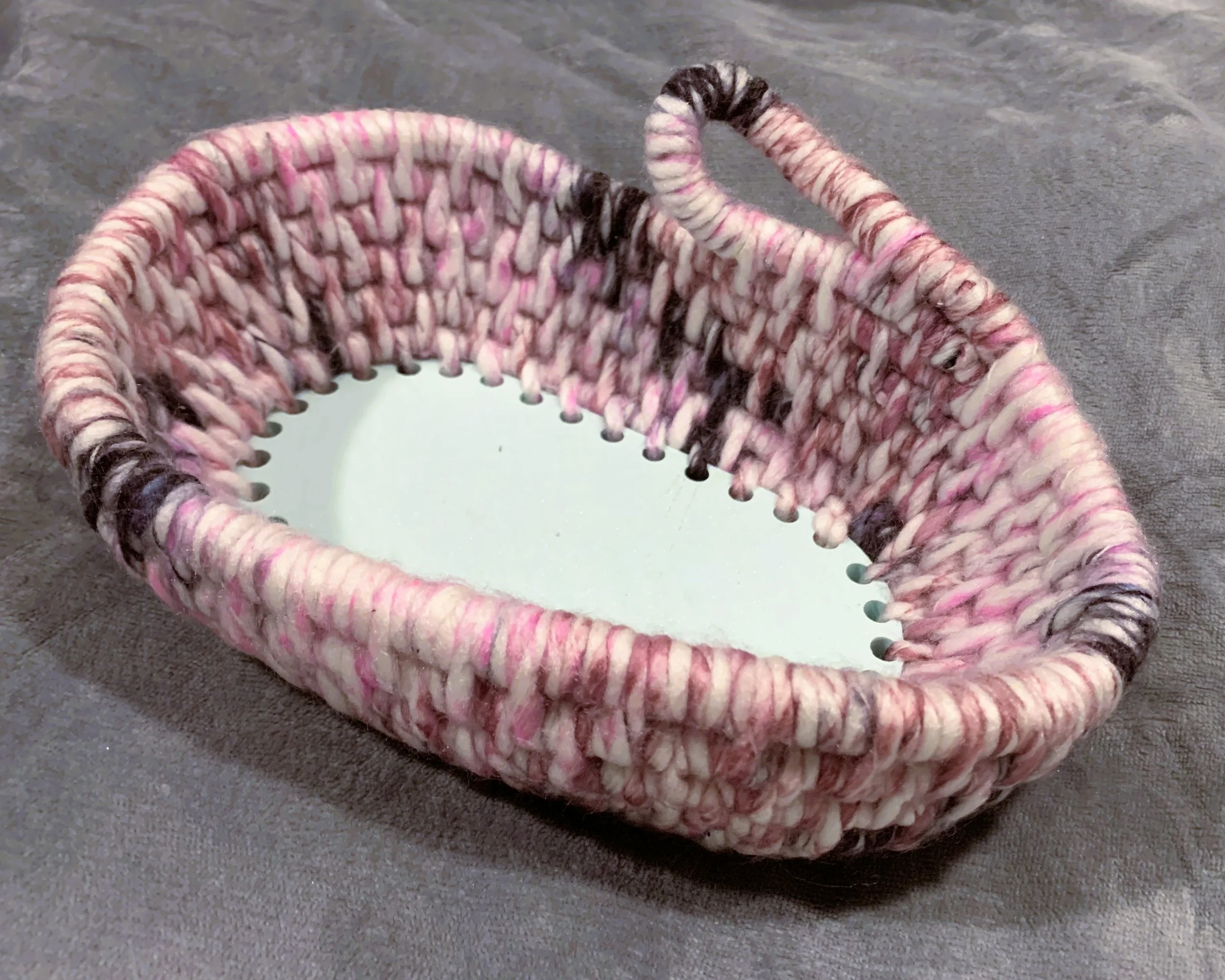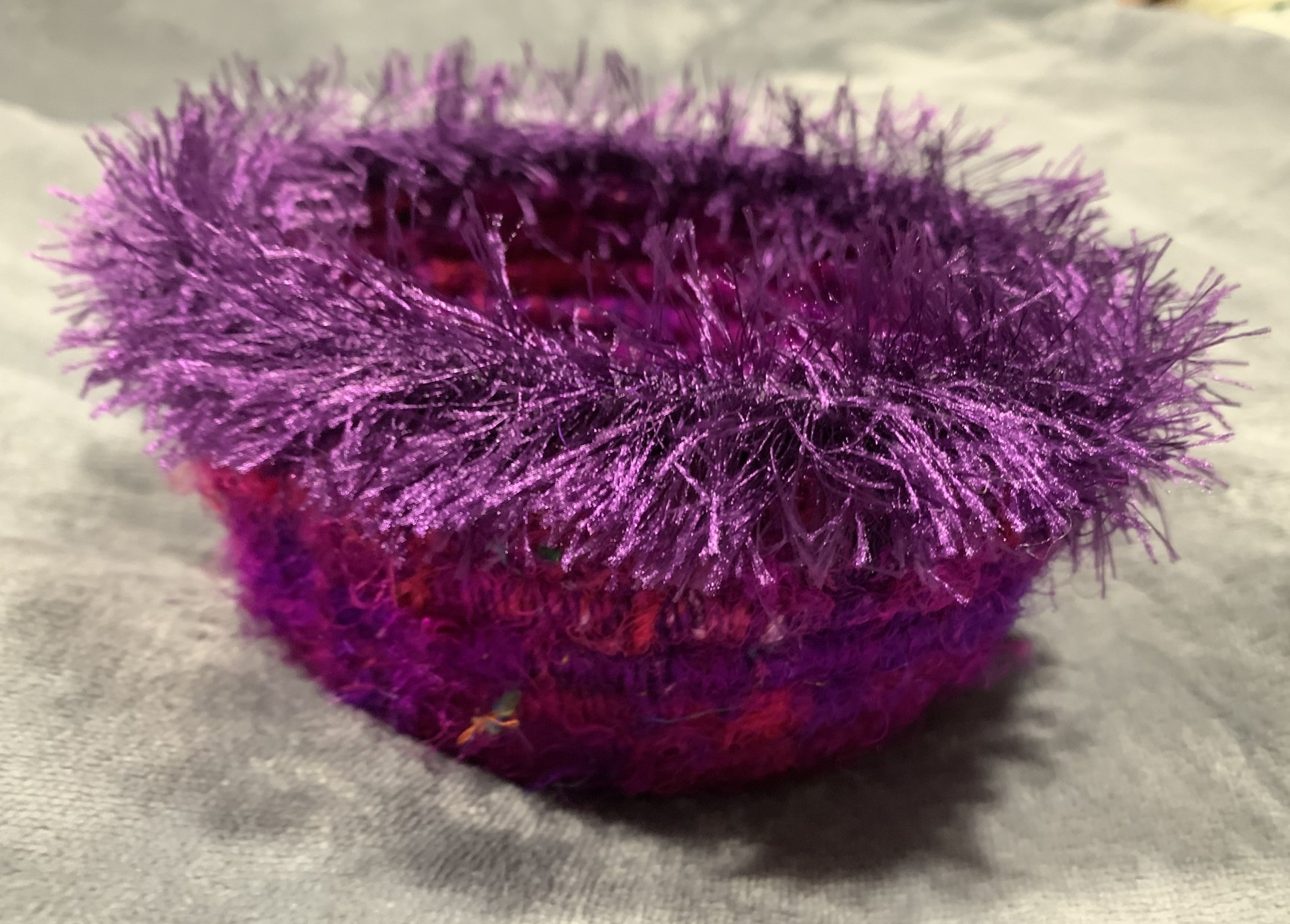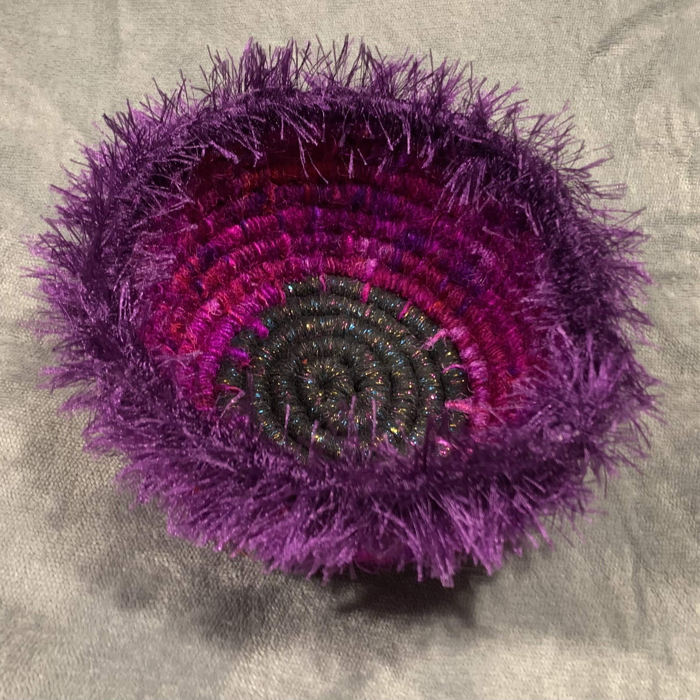 I have recently been creating one of a kind hand made coil baskets with cotton cord, yarn and embellishments.