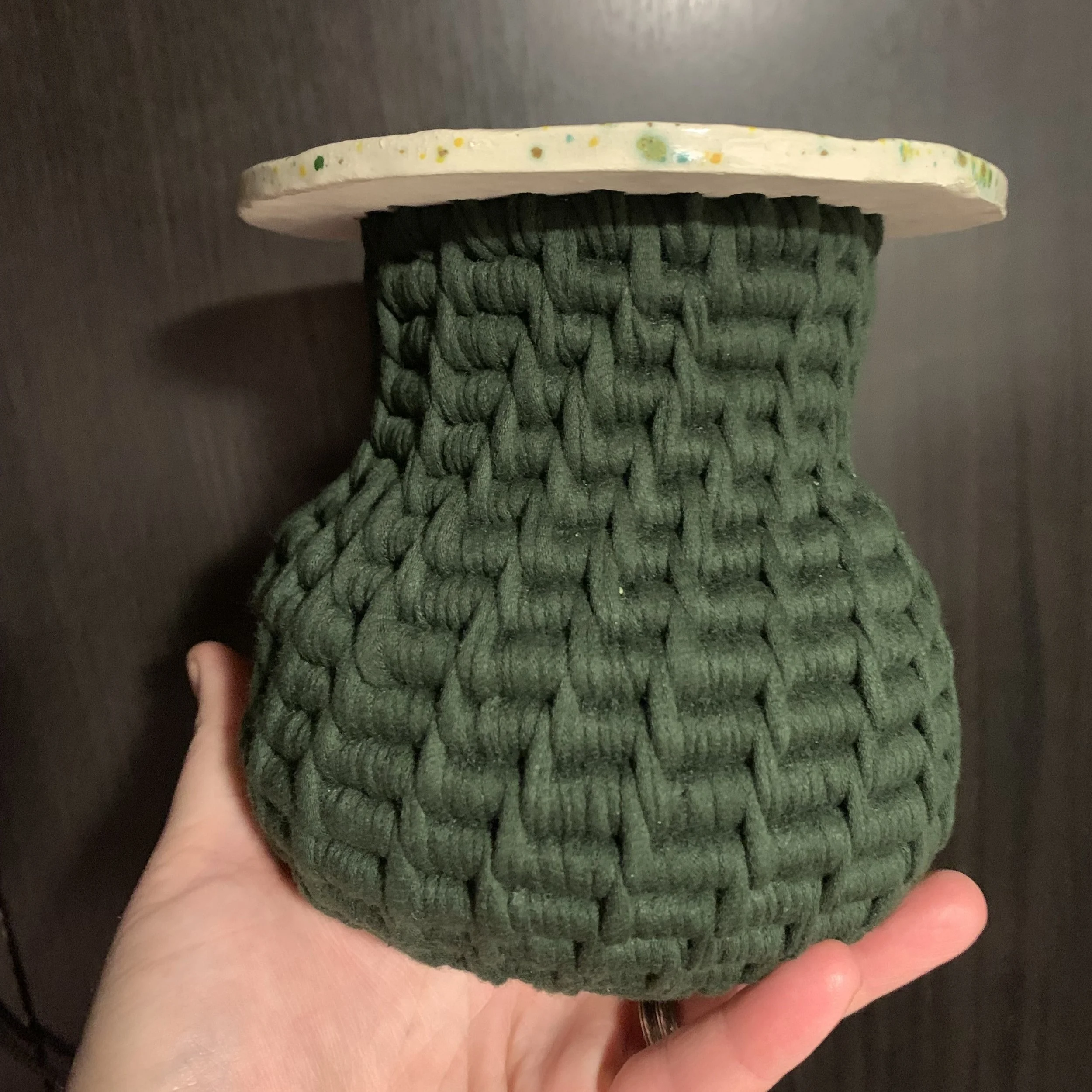 Cotton cord as the “filler” for the yarn to wrap around.