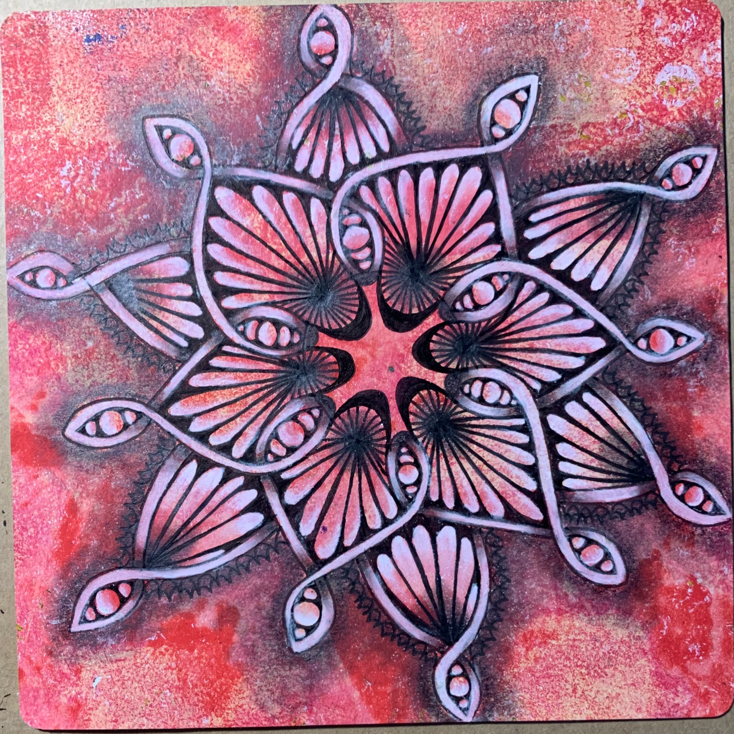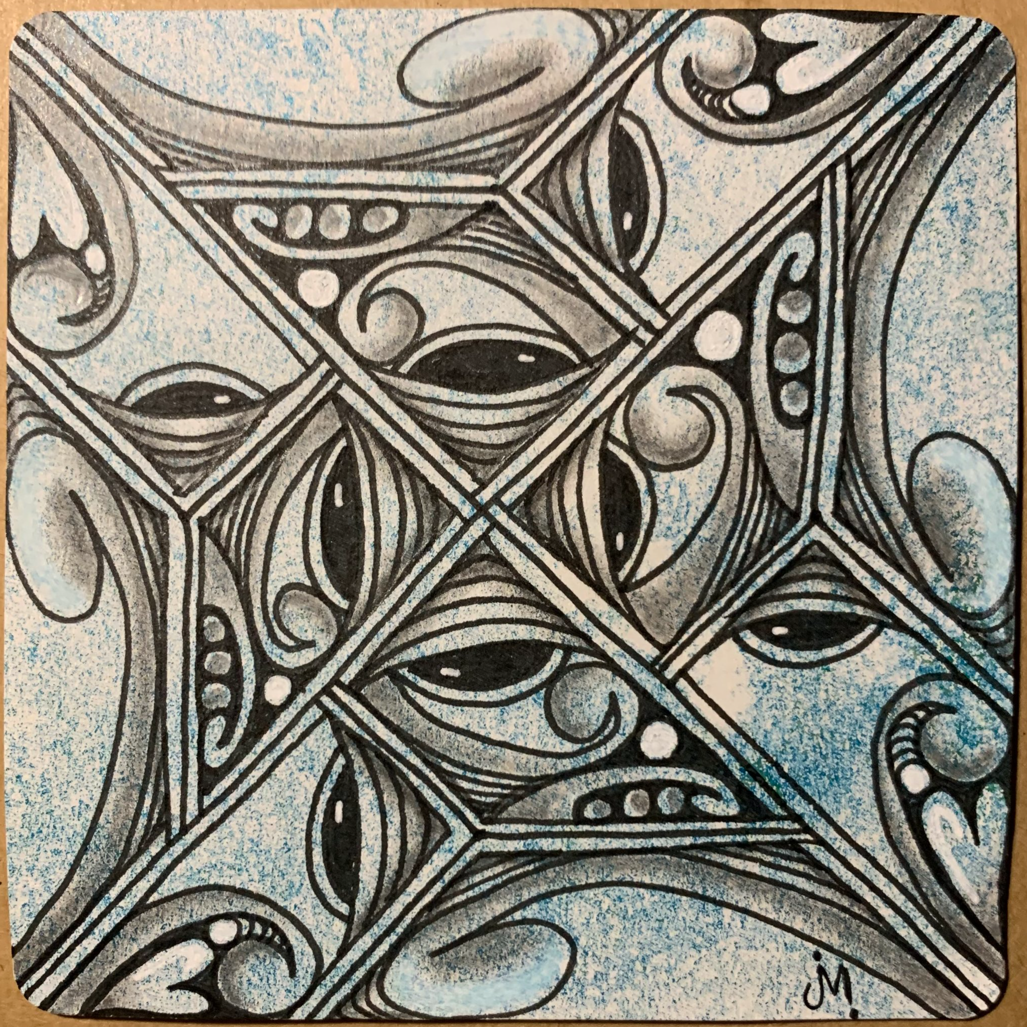 Blank Tile ~ Black Ink Tangle ~ Finished with Shading